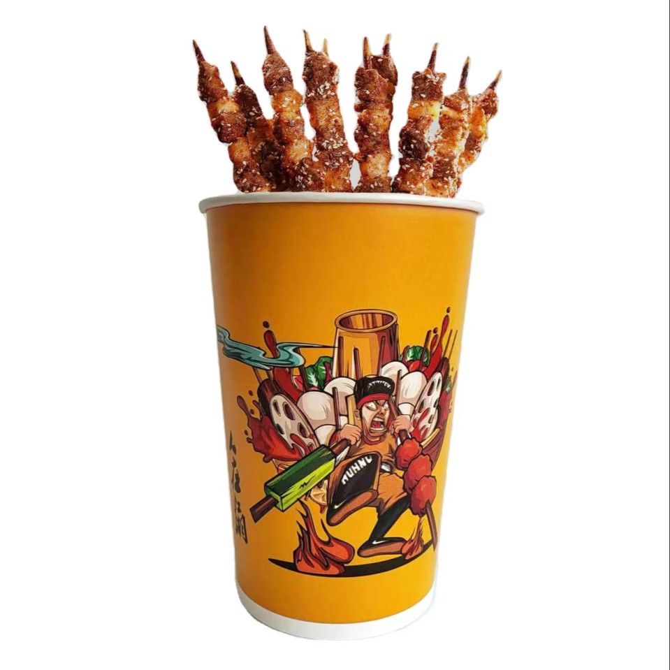 Our vibrant collection of disposable snack cups, specially designed for serving delicious skewers, street food, and grab-and-go treats with style and convenience. Available in multiple sizes, these cups are perfect whether you’re offering small tasting portions or hearty servings. Our model features a sturdy build, comfortable grip, and eye-catching printed designs that instantly add energy to your food presentation. With thoughtfully designed dimensions for stability and easy handling, they’re ideal for food stalls, events, parties, and takeaway businesses. Practical, colorful, and fun, these cups make serving your favorite snacks simple while giving your brand a bold, friendly look customers will love.
